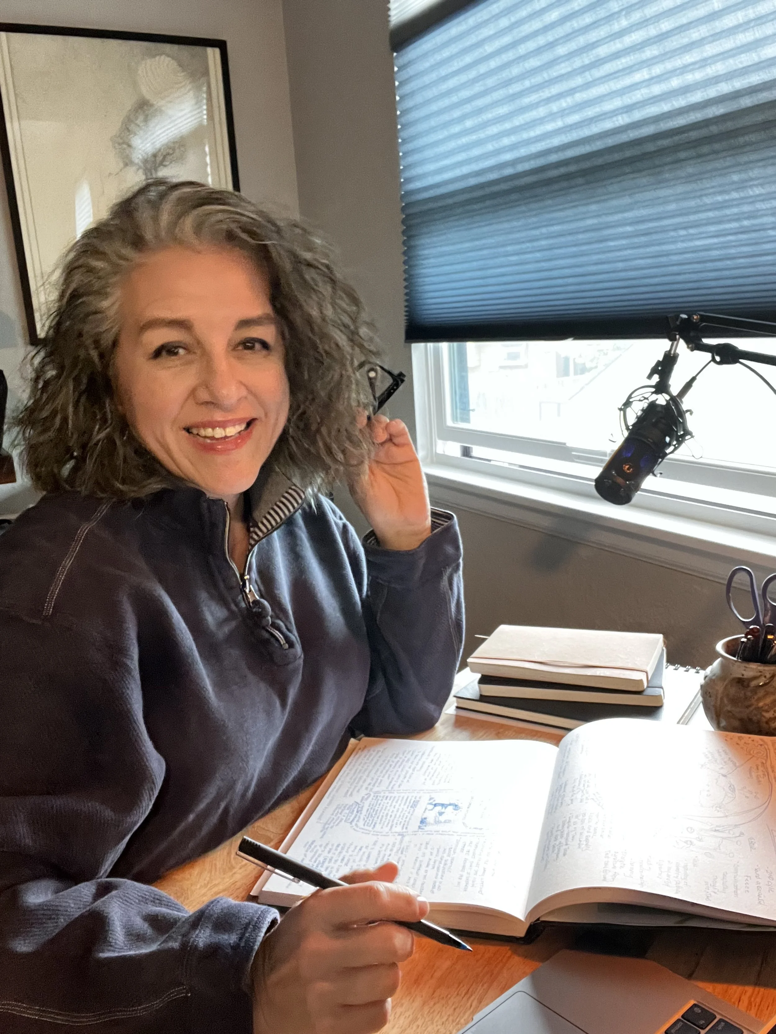 My “daily enriching connection practices” consist of early morning quiet time, journal conversations in both pictures and words, and walking with my buddy Mia.